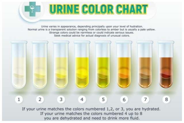 아침에 일어났을 때나 전날 땀을 많이 흘렸을 때에는 소변이 다소 진한 색으로 나오며, 반면에 물을 많이 마셨을 때나 겨울철에 땀을 적게 흘리는 경우에는 소변이 옅은 색으로 나올 수 있습니다.