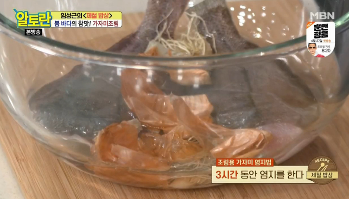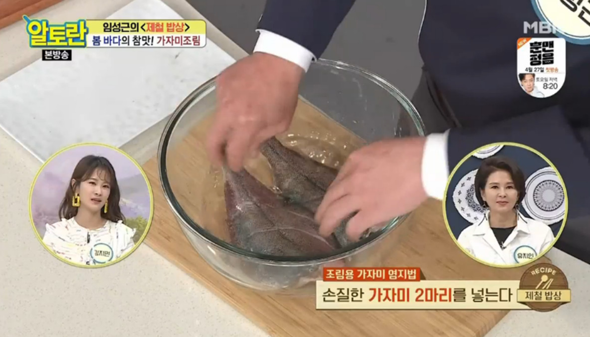 28. 아까 3시간 염지한 가자미 2마리를 올려주세요.