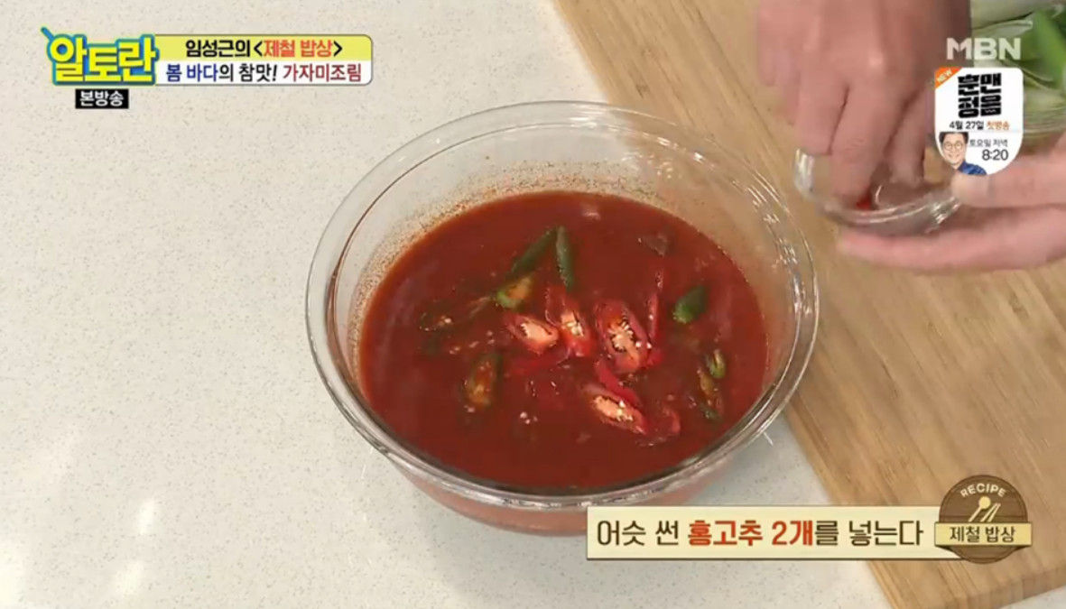 21. 어슷 썬 홍고추 2개도 넣어주세요.