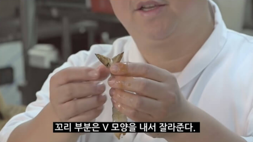 새우튀김을 할 때 새우가 둥글게 말리는데, 일자로 펴지게 하려면 추가로 해야 할 손질 과정이 있어요.