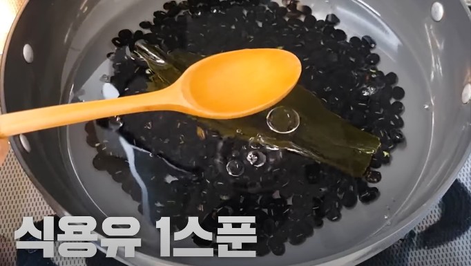 2. 콩을 삶을 때 식용유 1숟갈을 넣습니다.