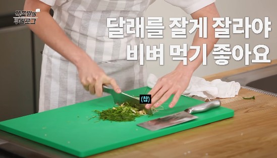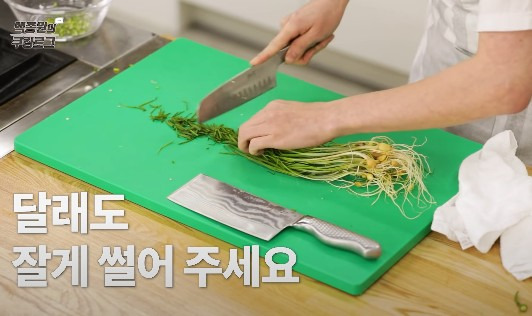 잘게 썬 달래를 다지듯 한 번 더 썰어주세요.