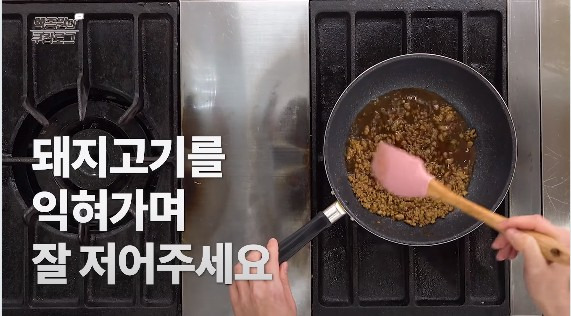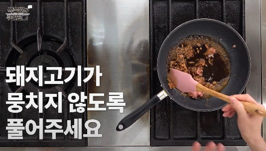 돼지고기가 뭉치지 않도록 잘 풀어주세요.