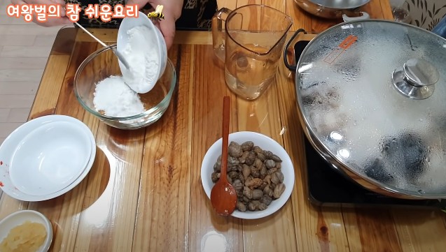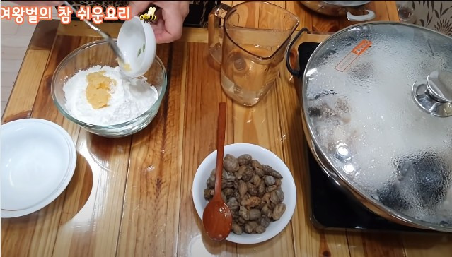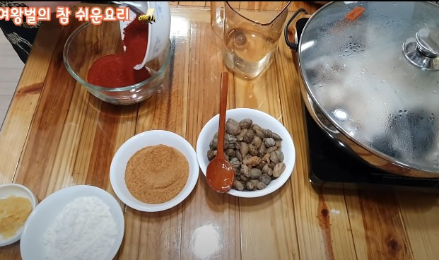 10분 정도 끓인 후 뚜껑을 열어보니, 오~ 꽤 많은 수분이 나왔어요. 이제 남은 시간 동안 양념을 만들어볼게요. 양념 만드는 것도 정말 간단하답니다.