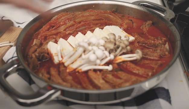 등갈비 김치찜 황금레시피 ④ 부재료 및 멸치육수 넣고 끓이기