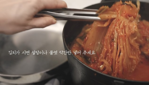 김치가 시면 설탕이나 물엿을 약간 추가해 주세요.