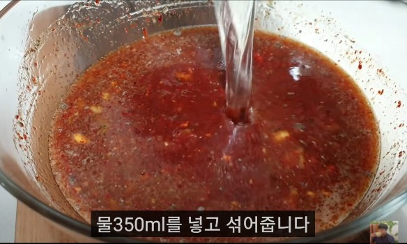 여기에 물 350ml를 추가한 후 섞어주세요.
