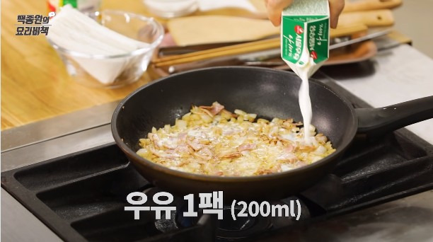 양파가 있으면 더 좋고, 농도를 맞추기 위해 밀가루가 약간 있으면 좋아요. 베이컨이 없으면 소시지나 햄을 대신 사용해도 무방하며, 양송이버섯을 추가하면 이국적인 풍미가 더해져요.