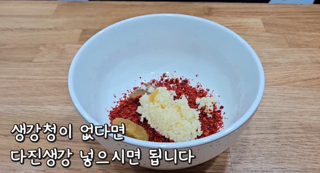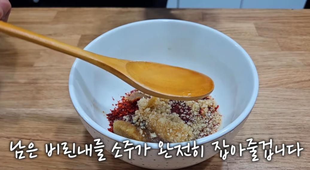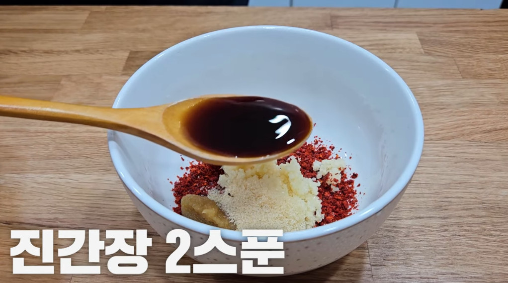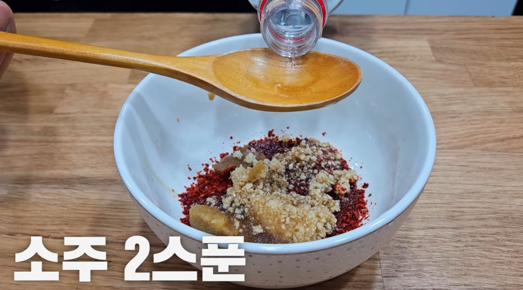 진간장 2스푼, 된장 1/3스푼, 설탕 1/2스푼, 다진마늘 1스푼, 고춧가루 3스푼, 소주 2스푼, 생강청 1/3스푼