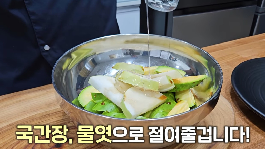 2. 애호박 1개 + 무 150g + 국간장 2스푼 + 물엿 1스푼