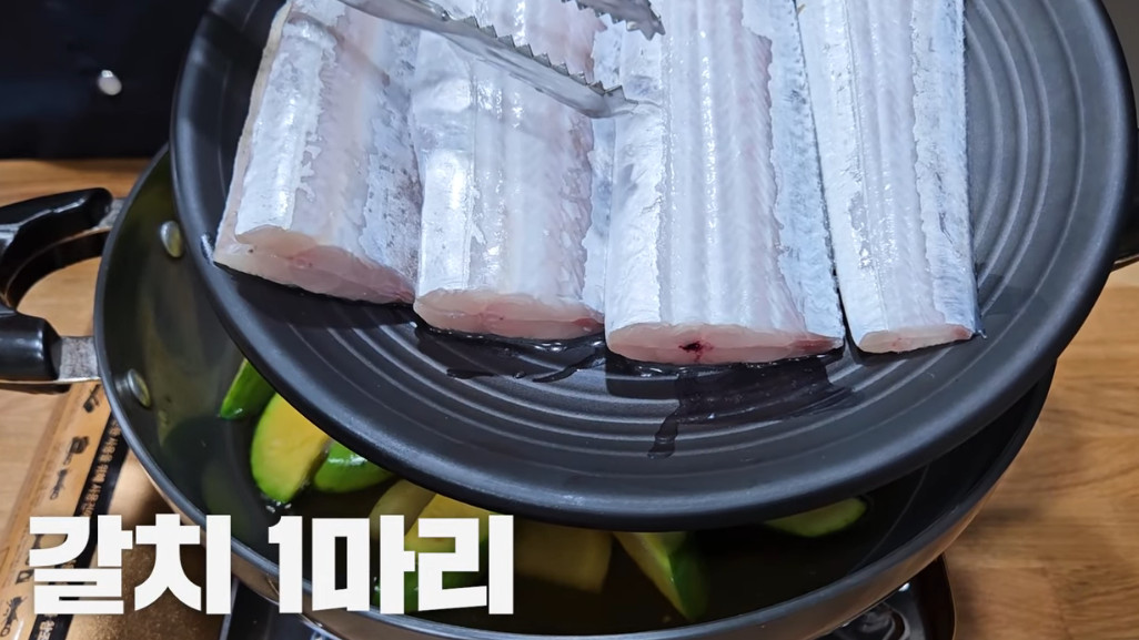 1. 갈치 1마리 (비늘을 제거하고 깨끗히 물로 씻어서 소금간을 3~4시간 해놓으세요)
