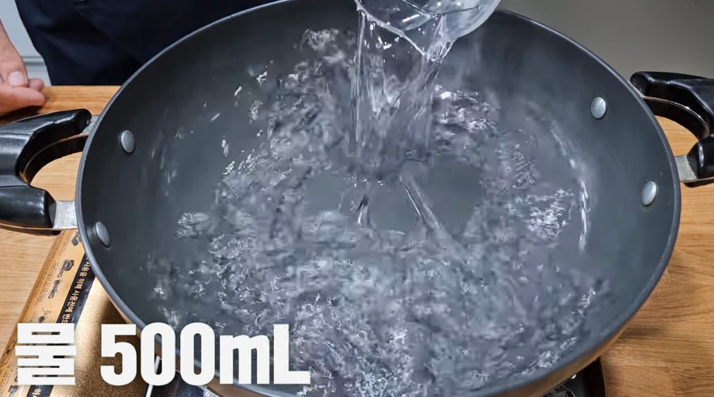 7. 냄비에 물 500ml를 넣고 물을 끓여주세요.