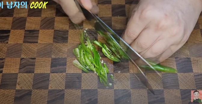 ● 양파도 반 개를 채 썰고, 청양고추는 반으로 자른 후 얇게 어슷썰어 채 썰어주세요.