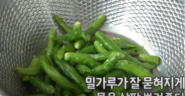 꽈리고추 찜 맛있게 만드는 법 ② 밀가루옷 입히기