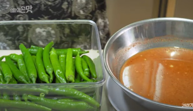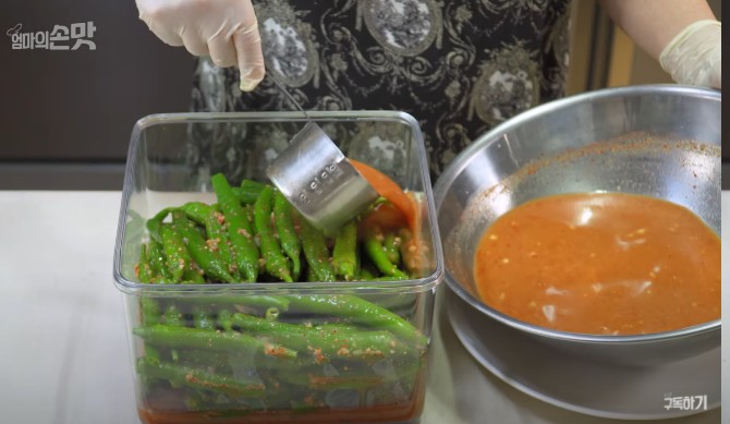 고추장아찌 만드는법 ④ 고추에 된장 양념물 붓기