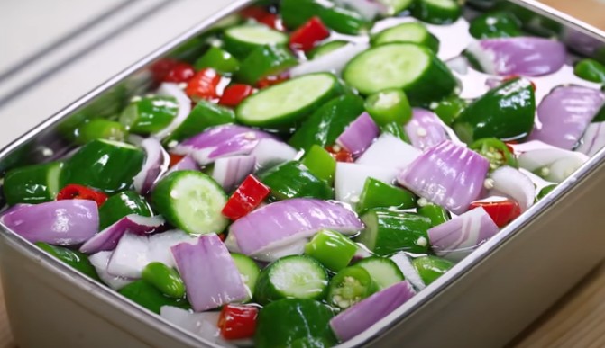 이렇게 만든 오이피클은 단촛물이 식은 후 냉장고에 보관하고, 이틀 정도 지난 후에 먹으면 새콤하고 맛있게 즐길 수 있어요. 자색 양파 덕분에 색감이 정말 예뻐요. 새콤달콤하면서 살짝 매콤한 맛이 더해져 아주 상큼하고 깔끔한 맛이 나요. 입안이 시원하게 느껴질 거예요.