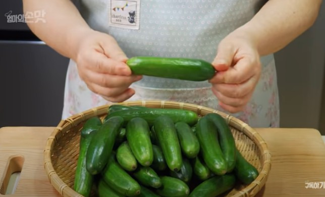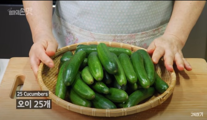 미니 오이 25개를 준비한 후, 흐르는 물에 깨끗하게 씻고, 물기를 잘 빼두세요.
