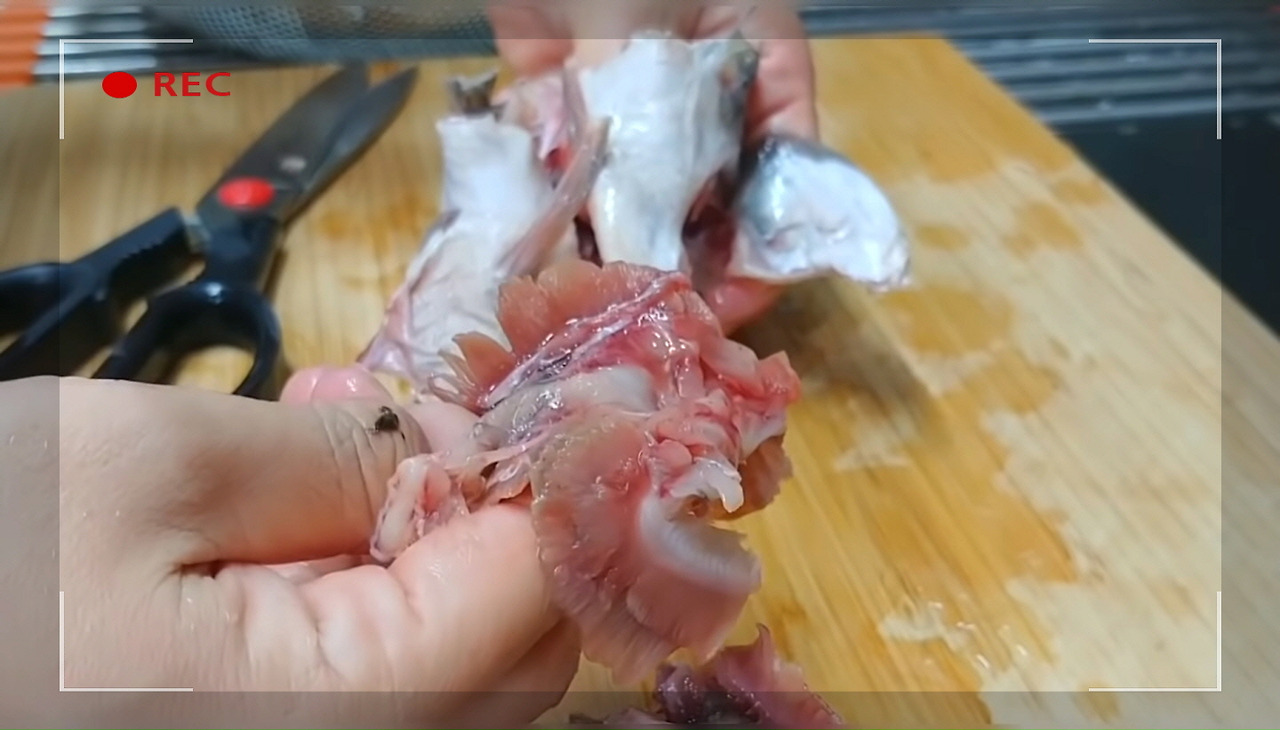 동태의 아가미를 깔끔하게 제거하는 과정이에요.