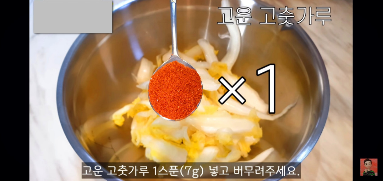 배추겉절이에 양념장을 넣기 전에 고운 고추가루 한 스푼을 먼저 넣고 버무려주면, 배추겉절이의 색이 예뻐져서 더 먹음직스러운 배추김치 겉절이를 만들 수 있어요!