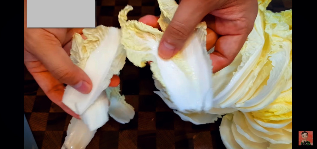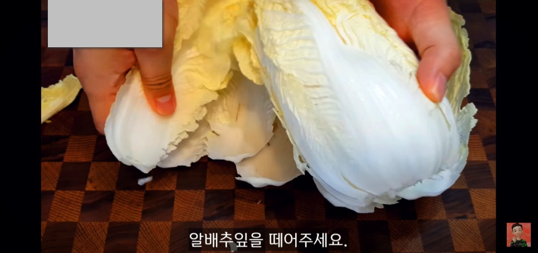 꼭지를 잘라내면 알배추 잎이 쉽게 떨어져요. 한 장씩 떼어내면 됩니다.