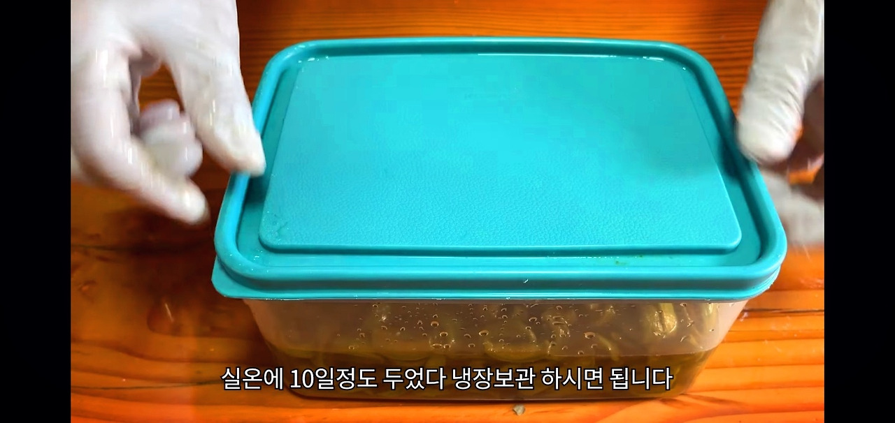 절여진 매실장아찌는 보관 용기에 담아두세요. 가장 맛있게 숙성되는 방법은 실온에서 10일 정도 두고 숙성시킨 후, 냉장보관 하는 거랍니다!
