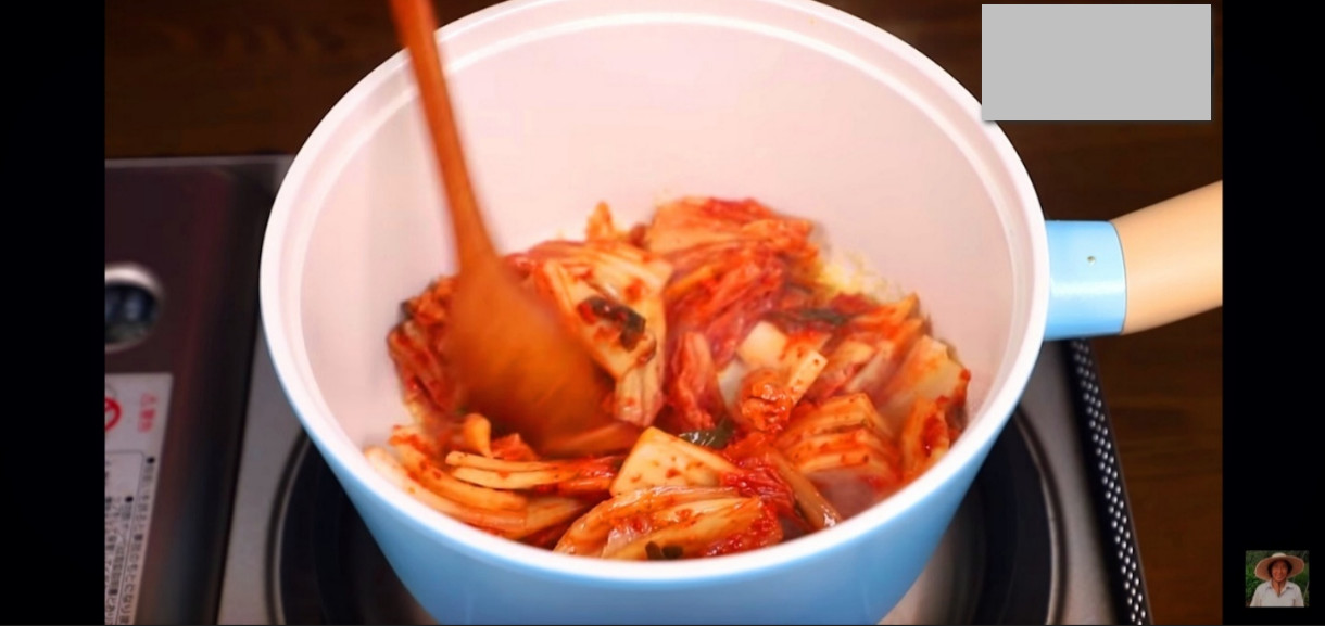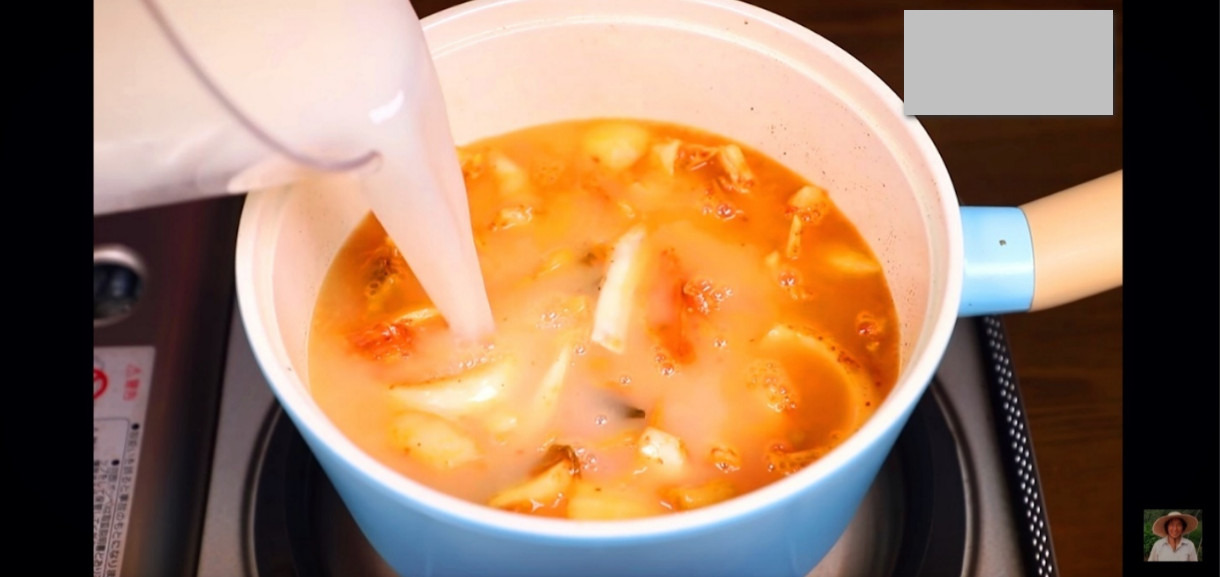 1분 정도 볶은 후, 쌀뜨물 500ml를 넣어주세요. 맹물보다 훨씬 더 진하고 깊은 맛이 나서, 꽁치통조림 김치찌개가 더 맛있게 완성될 거예요. 이제 본격적으로 김치찌개를 끓여볼까요?