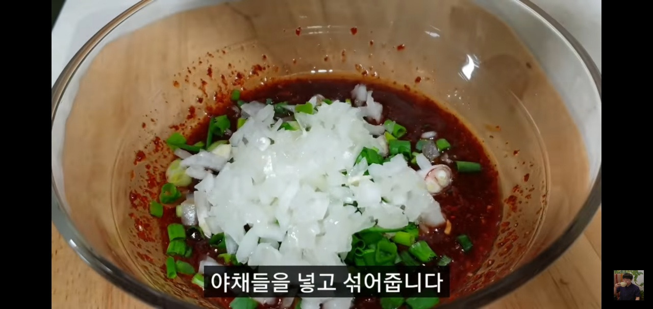 그리고 전에 손질해둔 재료들도 함께 넣고, 양념과 잘 섞어 맛이 잘 배도록 해주세요.