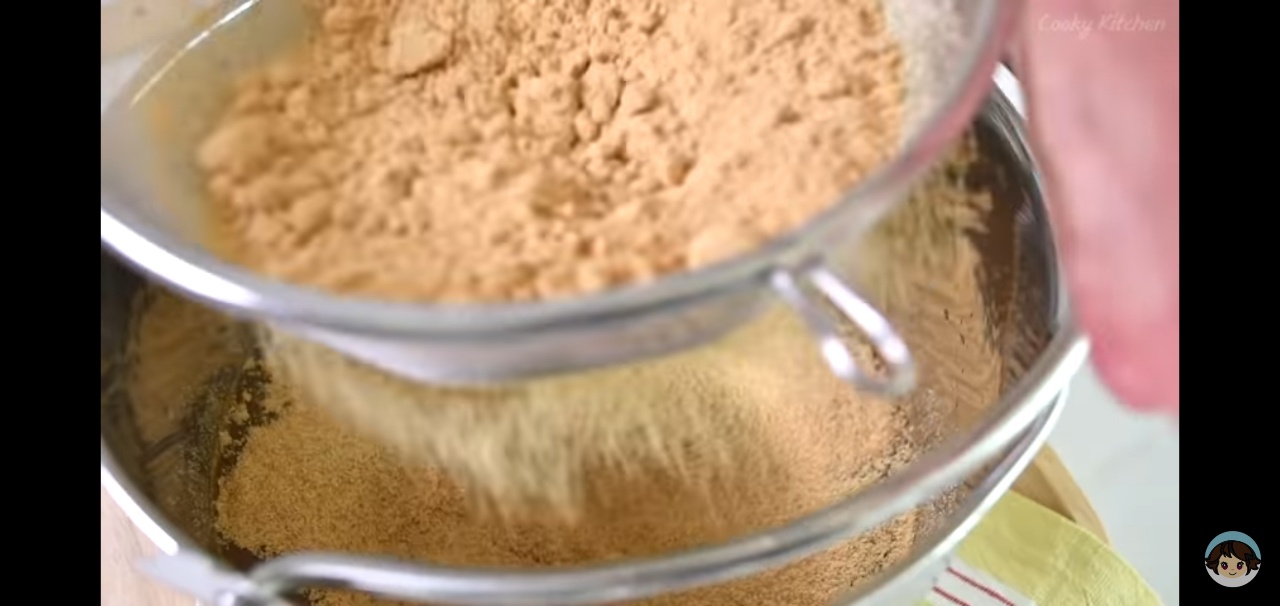 가루를 채에 넣고 손바닥으로 옆면을 가볍게 두드려서 가루가 잘 풀리도록 해주세요.