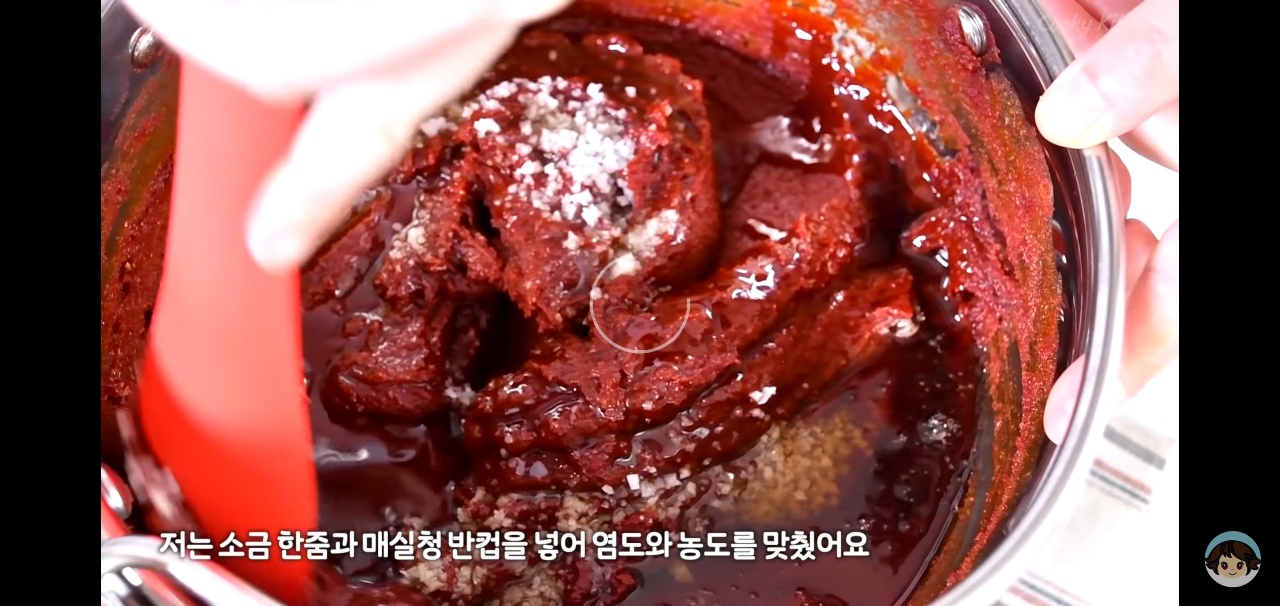 간을 보고 고추장이 너무 뻑뻑하면 매실청을 넣어 농도를 조절하고, 싱겁다면 천일염을 조금 더 추가해 주세요.