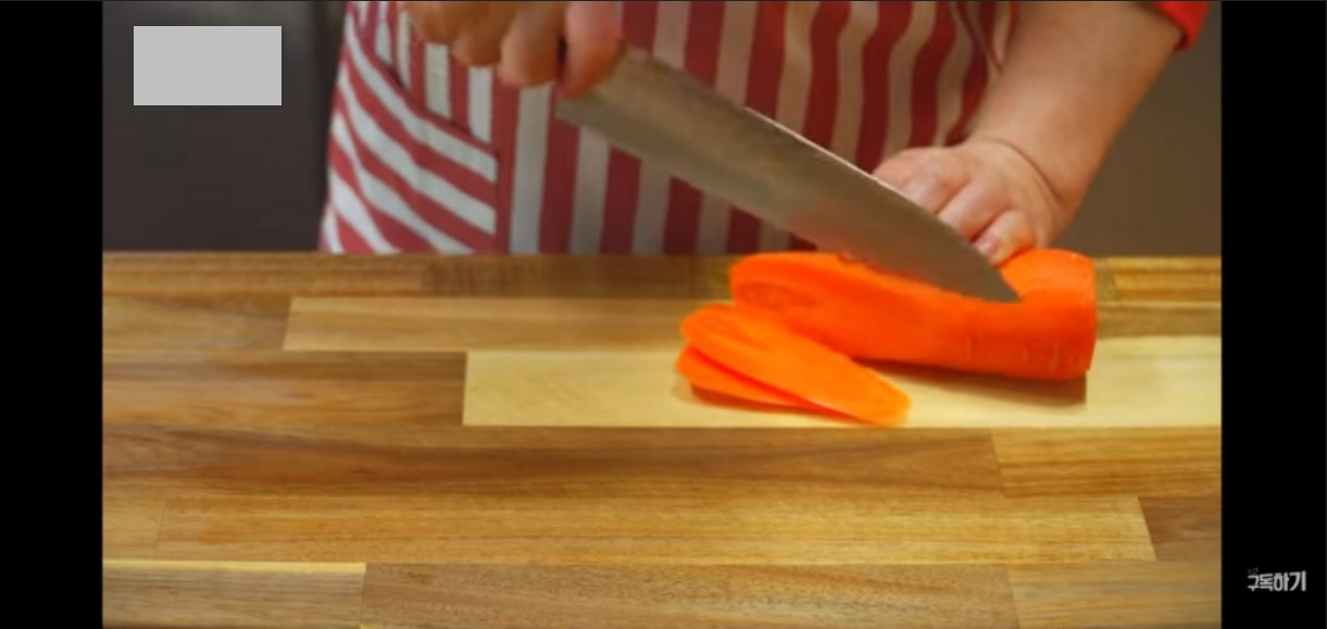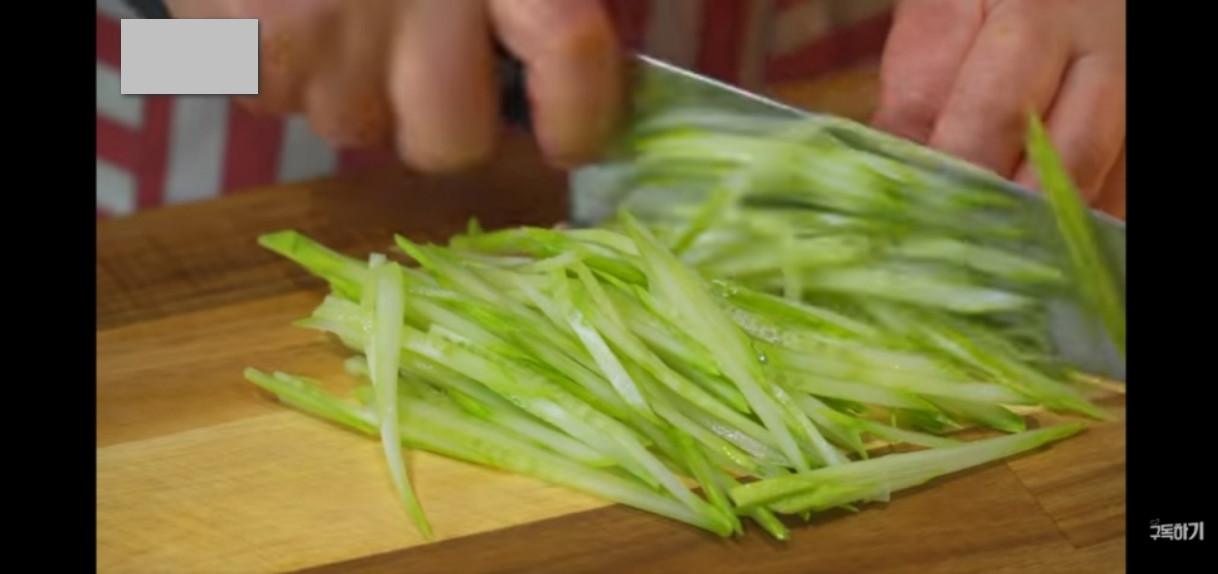 그다음, 칼을 이용해 양배추를 가능한 얇게 채 썰어 준비해주세요!