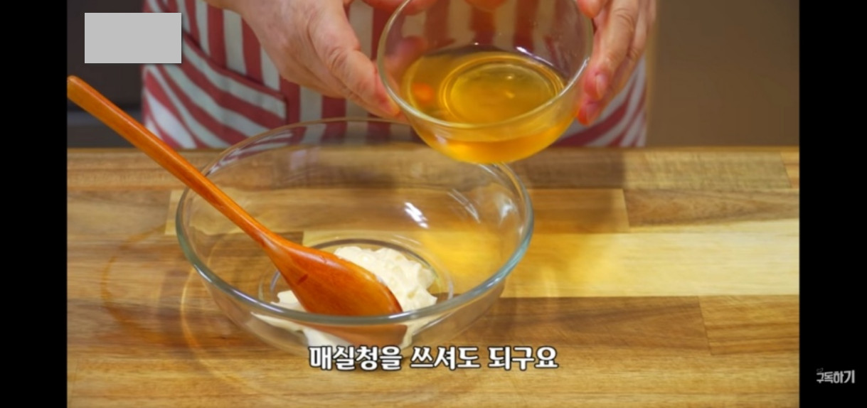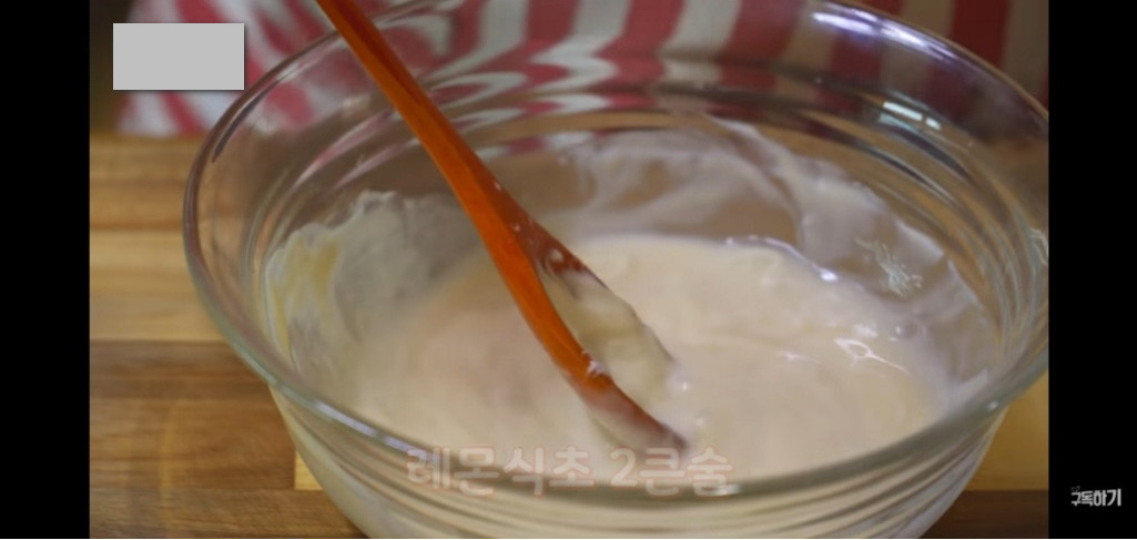 마요네즈 5스푼과 레몬식초 2스푼(없으면 매실청으로 대체 가능)을 넣어주세요.