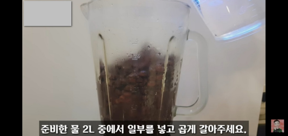 물 2L을 준비해, 믹서기에 팥을 갈 때 조금씩 넣어주세요.