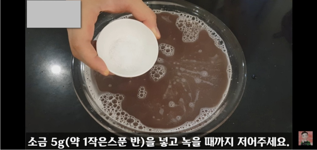 소금 반 스푼을 넣고, 녹을 때까지 잘 저어주세요.