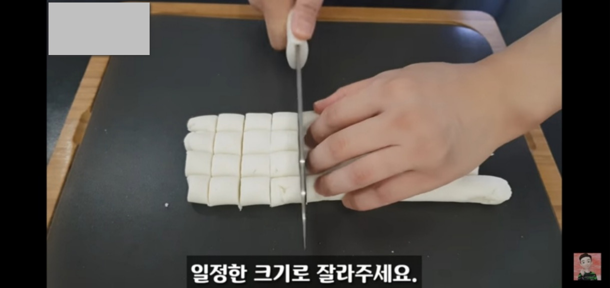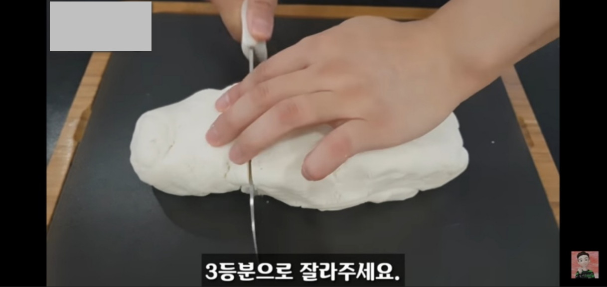 반죽된 찹쌀 반죽을 3등분으로 나누어 잘라주세요.