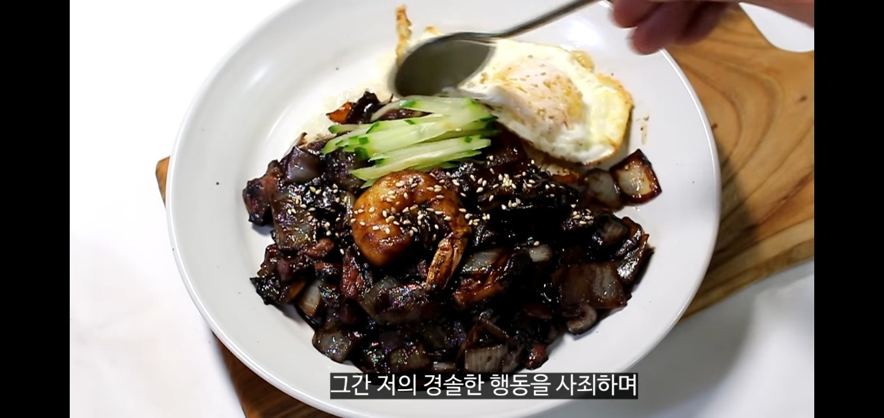 이렇게 하면 오늘의 간짜장 만들기가 끝이에요!