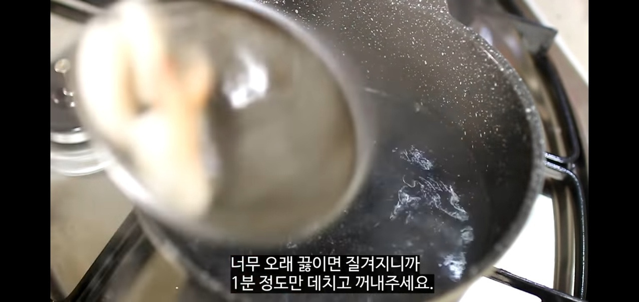 너무 오래 끓이면 질겨질 수 있으니, 약 1분 정도만 데친 후 건져주세요.