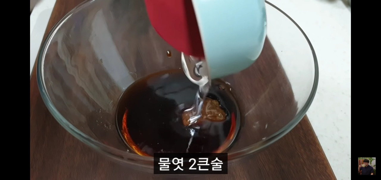 마지막으로 다진 마늘 1스푼과 농도를 맞추기 위해 물 50ml를 넣고 잘 섞어주면 양념장이 완성돼요.