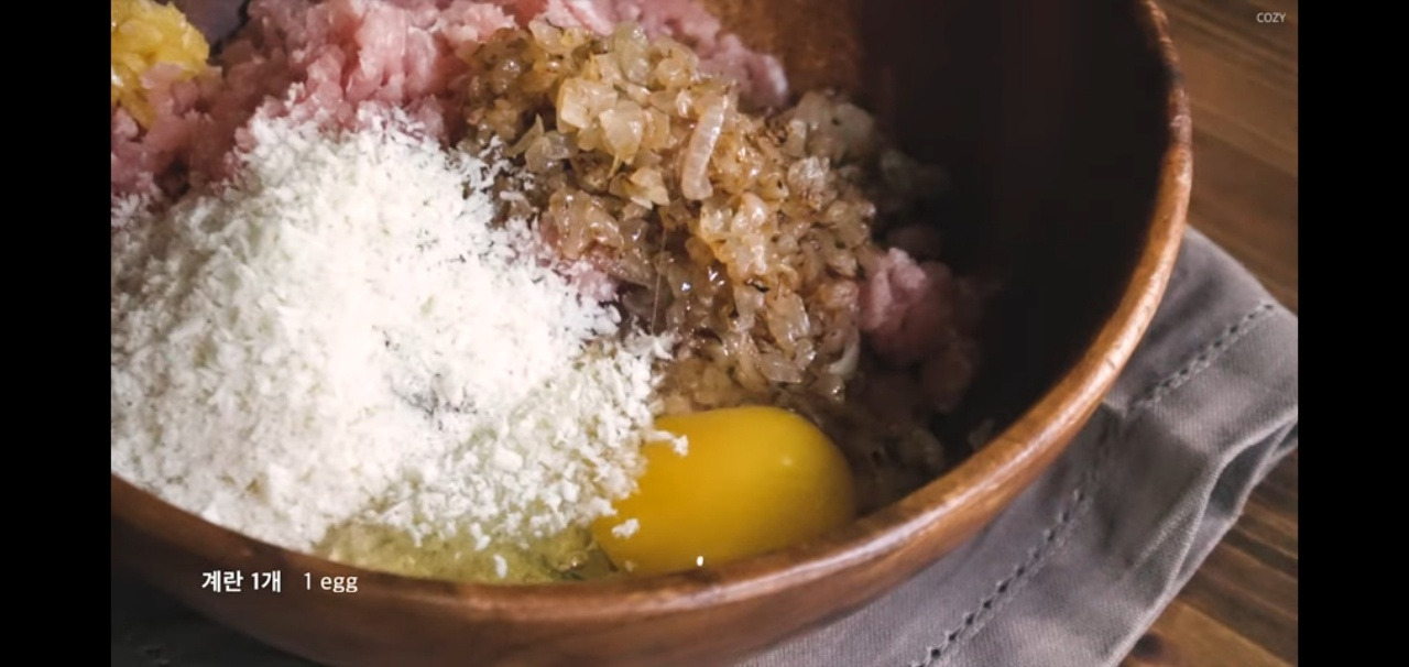 이제 함박스테이크 반죽을 완성해보겠습니다.