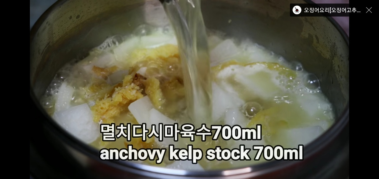 멸치다시마육수 700ml를 더 넣고 중불에서 끓여주세요.