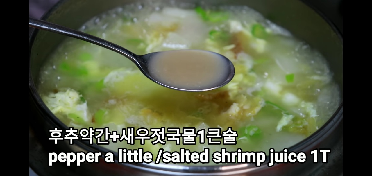 그 후, 후추를 취향에 맞게 넣고, 간을 조절하기 위해 새우젓국물 1스푼을 추가해주면 오늘의 황태국 끓이기가 완성됩니다.