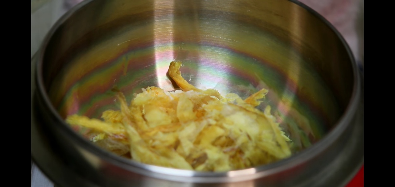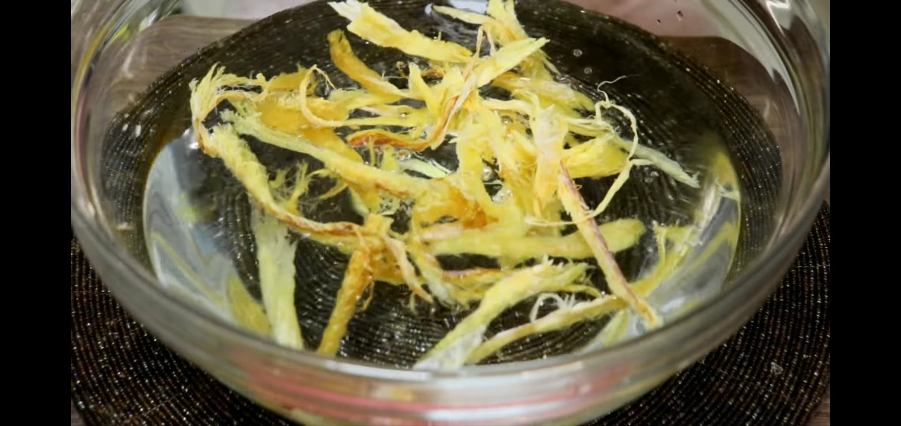 그리고 황태를 물에 담가 한번 씻은 후, 손으로 짜지 말고 건져내세요. 손으로 눌러 짜면 황태의 맛있는 국물이 빠져나갈 수 있답니다.