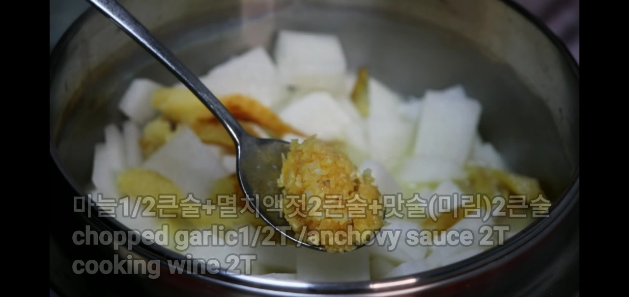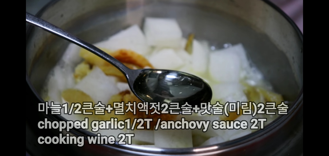 멸치액젓 2스푼과 맛술 2스푼도 함께 넣어주세요.