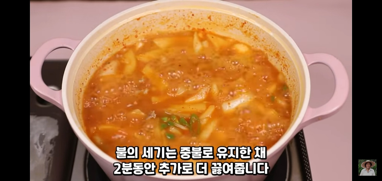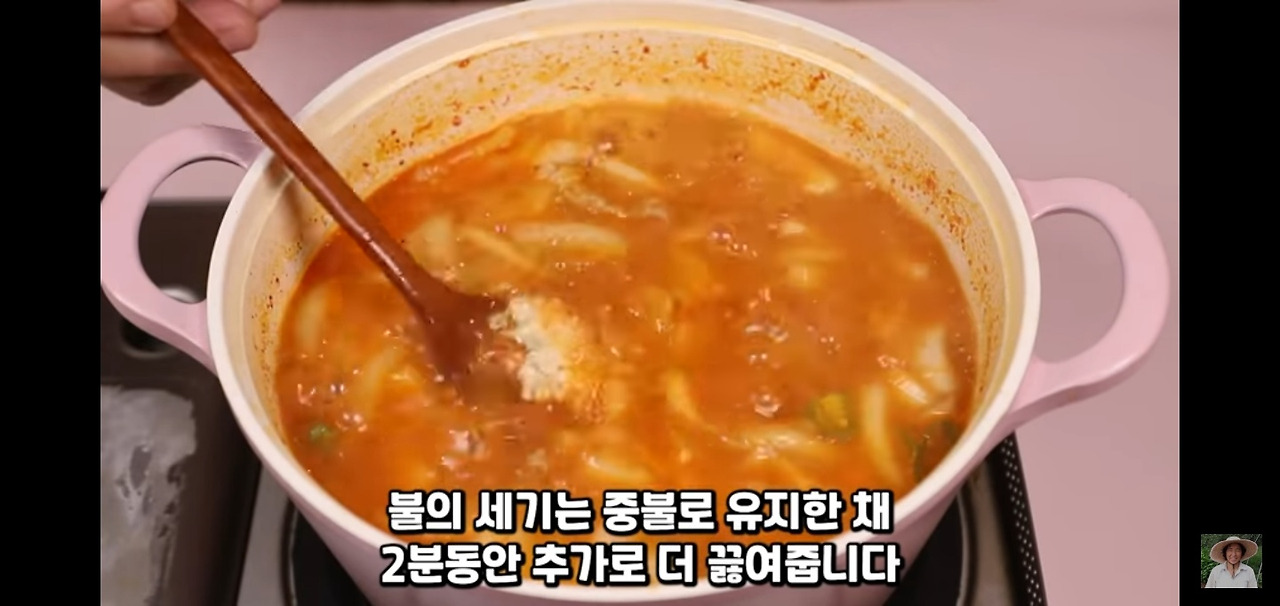 2분 더 끓인 후, 불을 끄고 나머지 다진 마늘을 넣어 주세요.