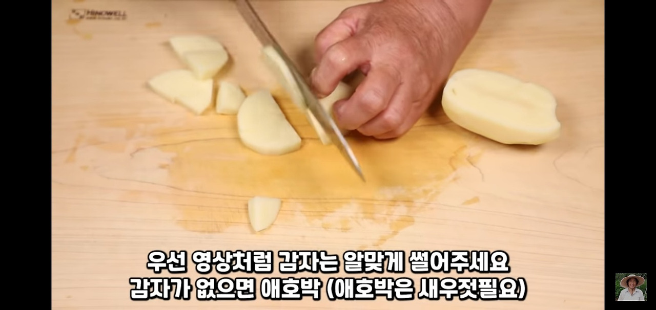 감자는 먹기 좋은 부채 모양으로 썰어서 준비해 주세요.