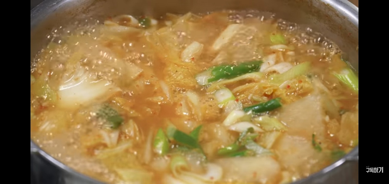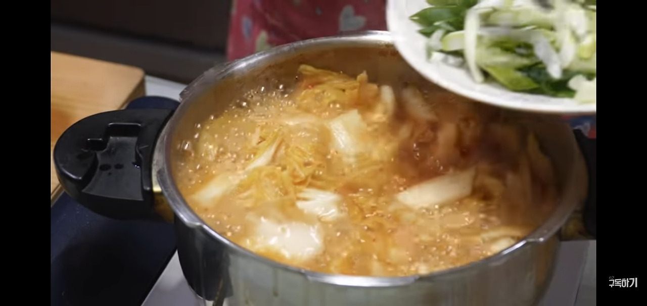 마지막으로 배추 된장국이 거의 완성되었으면 대파를 넣고 한 번 더 끓인 후, 불을 꺼주세요.