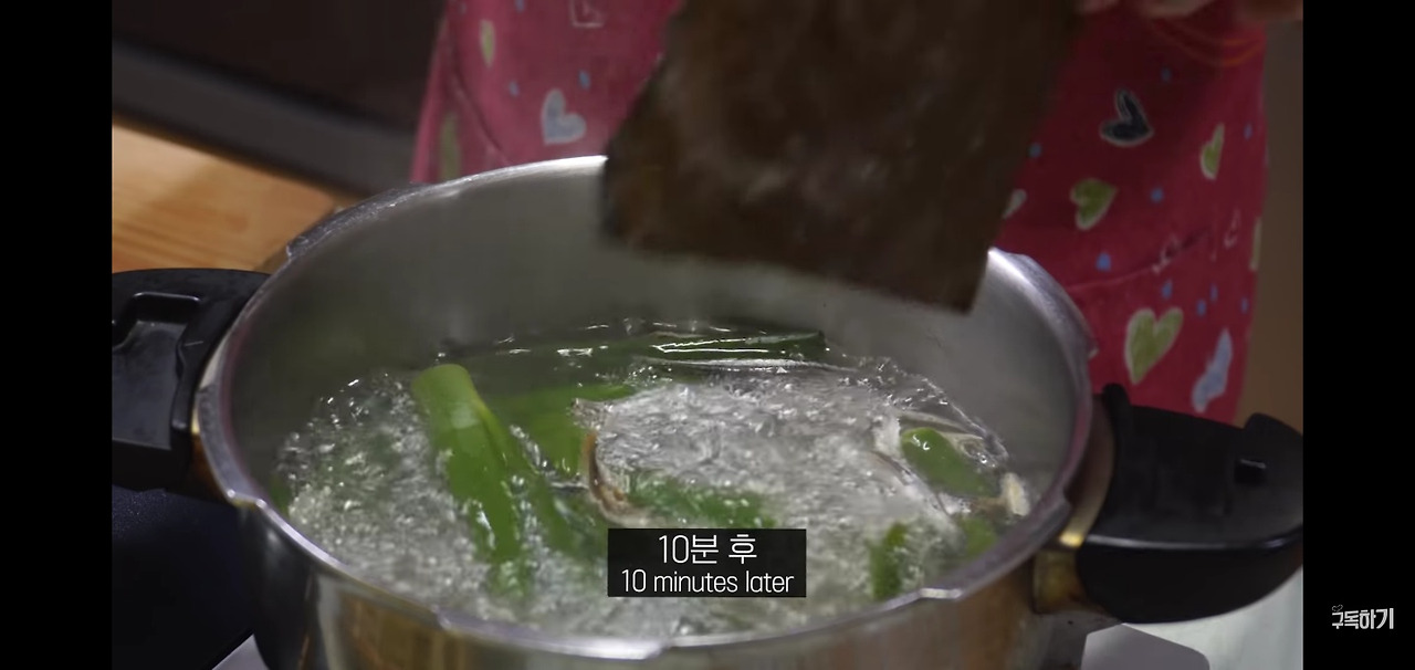 이 상태로 약 10분간 끓인 뒤, 다시마를 추가로 넣어주세요.