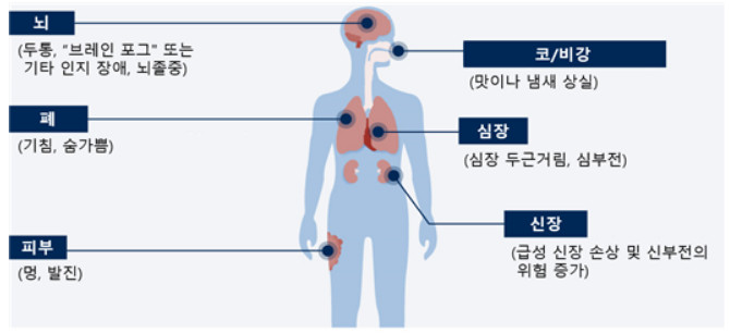또한 코로나 후유증의 경우 초기에는 호흡기 증상에 집중되는 반면, 그 이후부터는 복합적인 증상이 나타날 수 있다고 합니다. 만약 후유증 증상이 4주 이상 지속되는 경우는 반드시 다시 진료를 받아야 합니다.