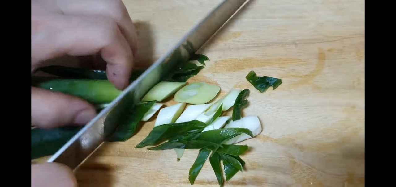 먼저, 대파는 2/3 정도를 어슷하게 썰어 준비해 주세요.