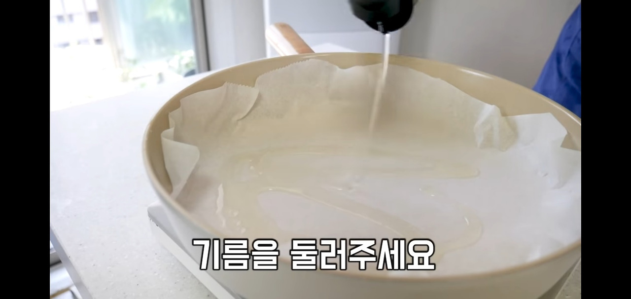 다 구워진 황태는 따로 옮겨 놓고, 팬에 종이호일을 깔아 주세요.