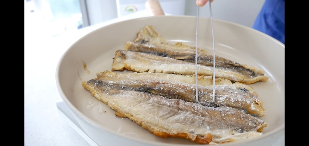 그다음, 여기저기 숨겨진 잔가시를 꼼꼼히 제거해 주시면 더욱 깔끔하고 맛있는 황태 양념구이를 즐기실 수 있습니다!